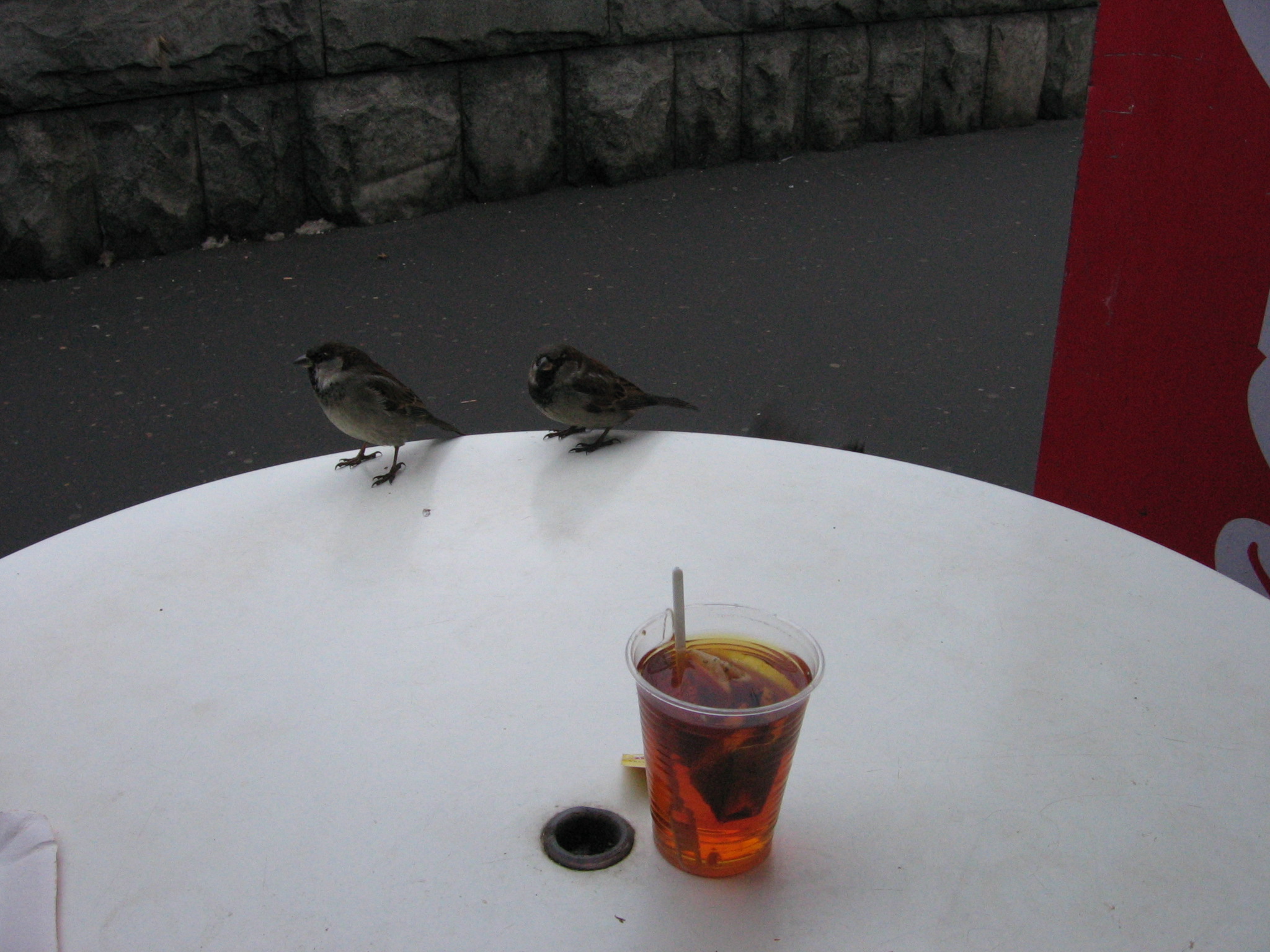 Воробьи на фоне чайного стакана